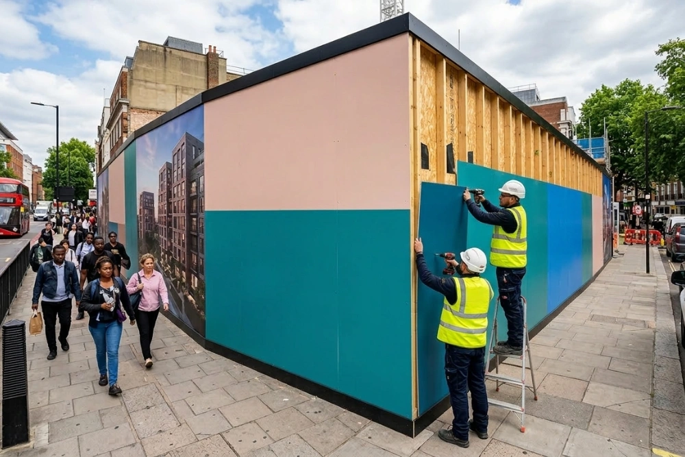 For projects located in high-visibility areas such as city centres or retail districts, printed hoardings help maintain a polished and professional appearance throughout the construction process.